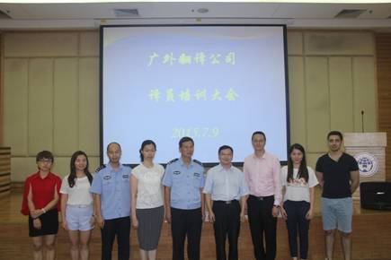 2015年7月10日下午,广外翻译公司第一次译员培训大会在图书馆报告厅如期圆满举行。广外资产经营公司总经理孙建军先生、白云公安分局杜文仲警官和广外留学生院梁学宏院长在培训会上做了精彩演讲。市公安局出入境管理支队三大队教导员钱奕文警官、白云分局人口管理大队副大队长朱永锋警官和东莞市邦能培训中心谢立红校长等出席了培训大会。一百多位英语、法语、俄语、日语、韩语、泰语、越南语、西班牙语等不同语种的广外翻译公司专兼职译员踊跃参加了此次培训大会。